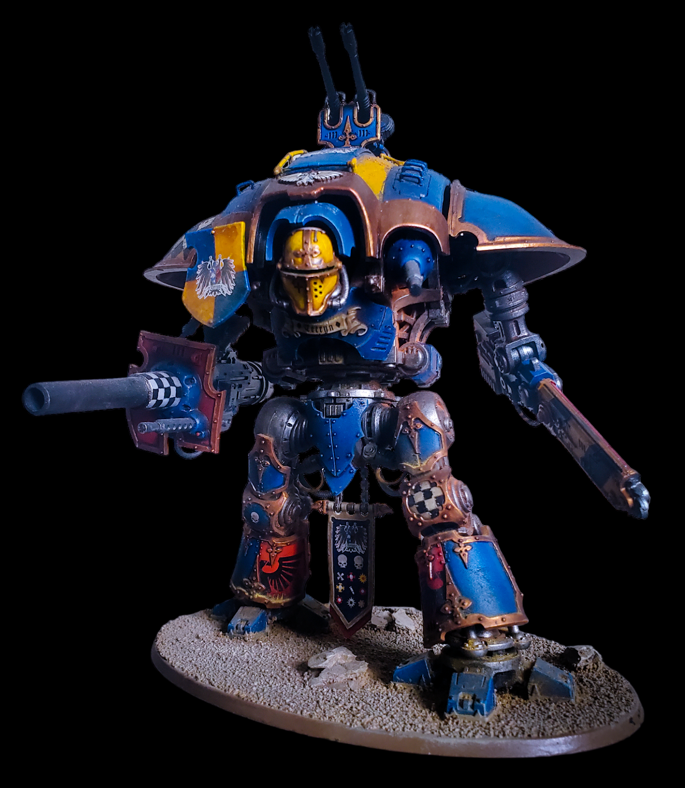 I had borrowed a codex and this was my take on a Baron- kingsward. This lance in question had become attached to a Titan Legio and deliberately left off some of the Terryn icons and operated more like free blades. Always deployed and never returning to Voltoris. Always walking in service of the Emperor, seeking out conflict across the galaxy instead of returning for ceremonial duty.